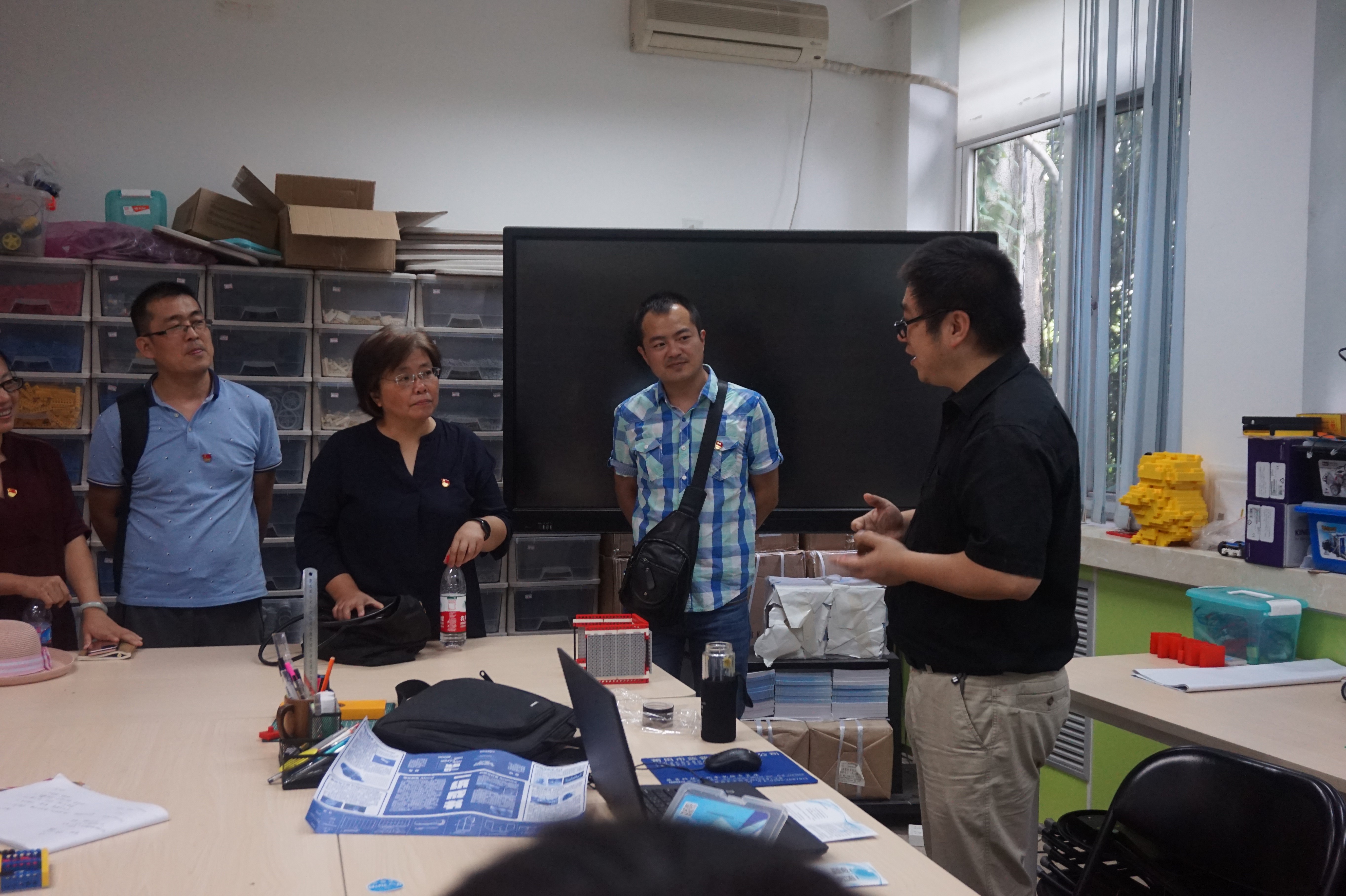 最后,祁靖一社长一行跟随傅骞副院长参观了我院演播室、创客空间,对我院的基础设施以及教学环境给予高度赞扬,也希望与我院还有更多的合作机会。